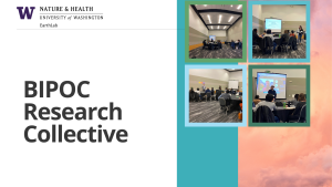 The UW Center for Nature and Health is committed to the institutional practice of equity and justice. We honor, value, and strive to embrace diverse and equitable learning environments, promote access, justice, and opportunity for all. We recognize that ableism, institutional racism, and binary (cis) gender convey the dominant history and social values that do not meet the needs of all communities. We partner with constituents who inform our wider community through activities, experiences, ideas, and multiple knowledge systems to expand our field. Our commitments to diversity and equity are ongoing. We learn collaboratively through education, outreach, practices, policy, and research approaches—below are a few examples.