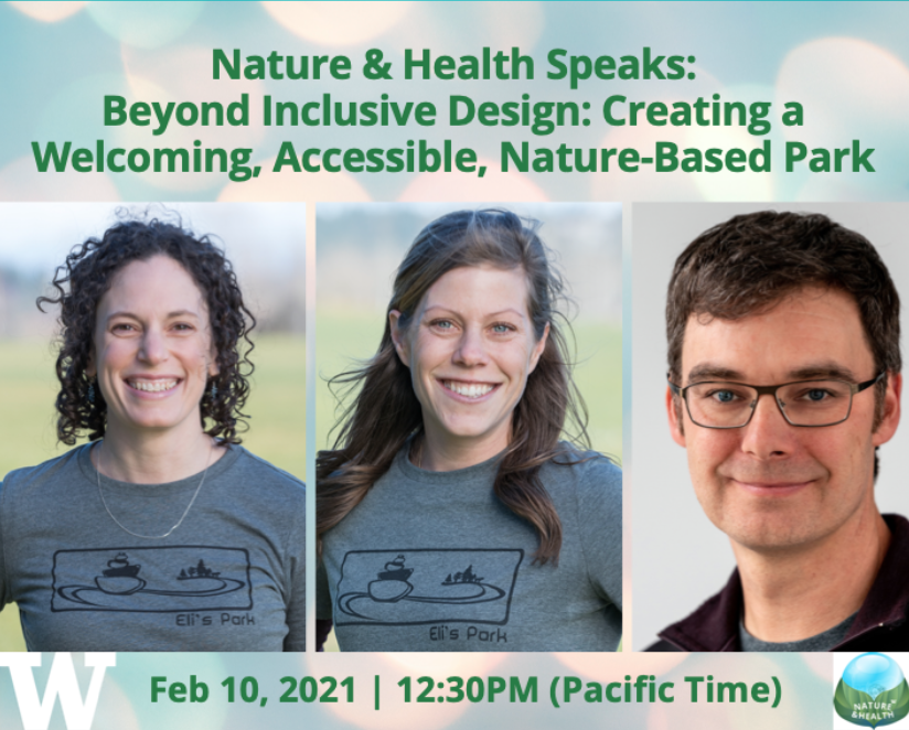 Public parks define our neighborhoods and shape our communities, yet too few are holistically designed to be inclusive and even fewer in a nature-based setting. On February 10, 2021, founders of The Eli’s Park Project shared their roles in designing a welcoming, accessible and nature-based park for all at Burke-Gilman Playground Park in Seattle.
