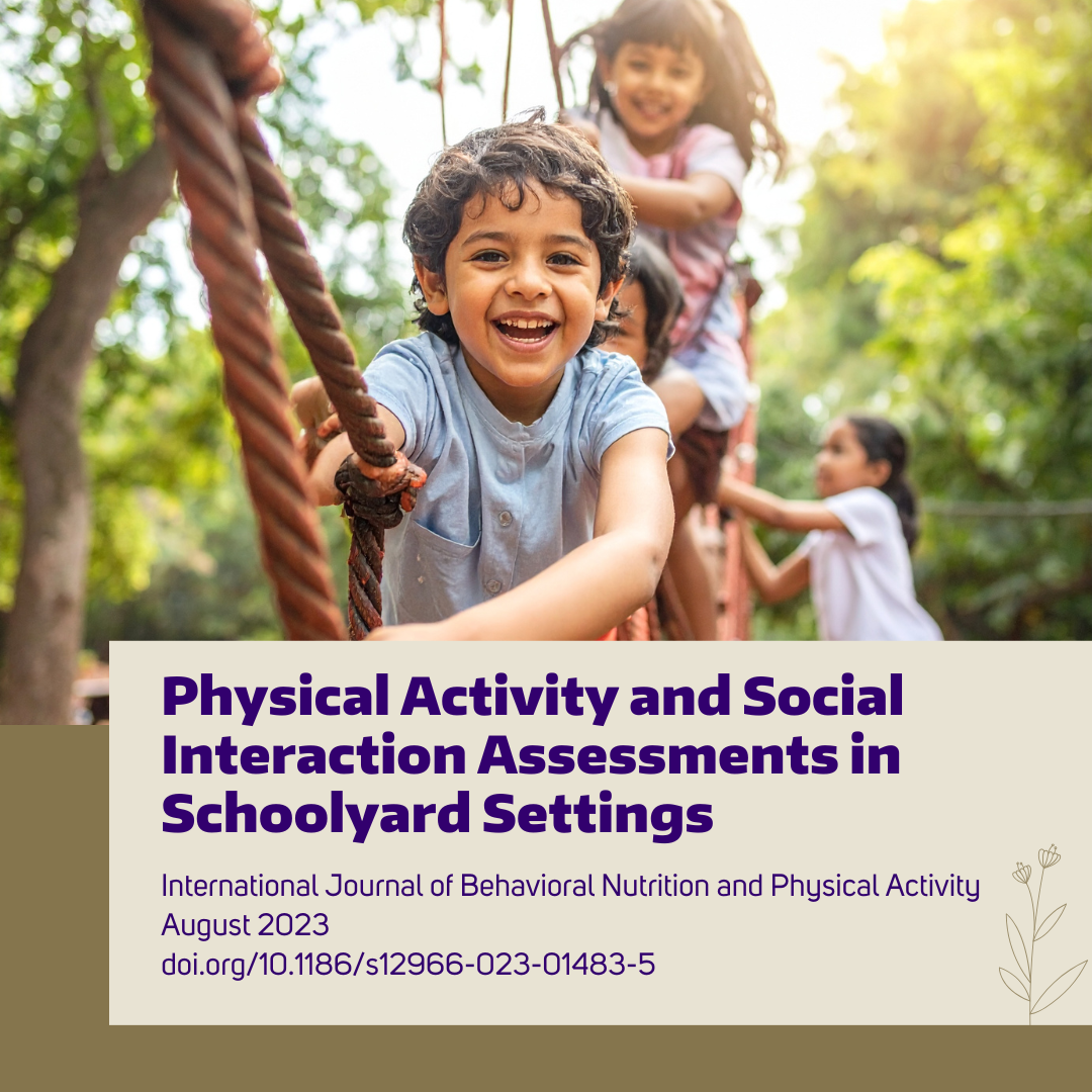 A group of children play on a playground surrounded by mature trees.Schoolyards are important places where children can be active and build social skills. They can also serve as park spaces for the whole community when school is not in session. In this study, researchers wanted to learn how children and community members use schoolyards and how different schoolyard features may encourage physical activity and positive social interactions.